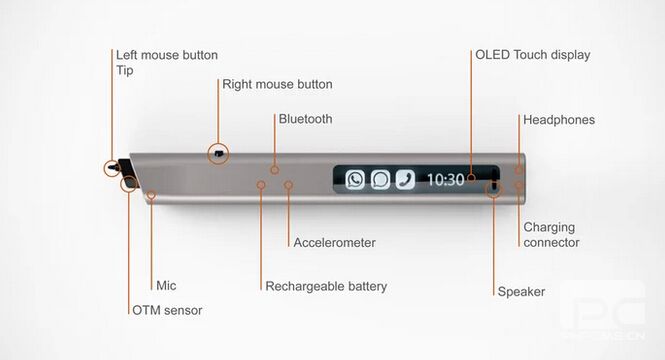 Phree 是世界上首款不受任何限制、在任何地方都可以虛擬書寫的高分辨率移動輸入設(shè)備。它為用戶提供了一種在手機屏幕之外表達自己想法的更快速更輕松的方式。Phree 的設(shè)計經(jīng)過了多次改良,目前已經(jīng)達到較優(yōu)異的用戶體驗。Phree 筆身很細,長 142mm,寬 18mm,厚度為 8.5mm,重量為 30g,形狀符合人體工程學,拿在手里很輕很舒適。而且屏幕的一面總是面對著使用者,方便隨時激活,輕輕點擊屏幕就能實現(xiàn)手寫筆到熒光筆、紅色到藍色、信息到撥號的切換。Phree 采用了黑色、石墨色、銀色和金色四種顏色方案。