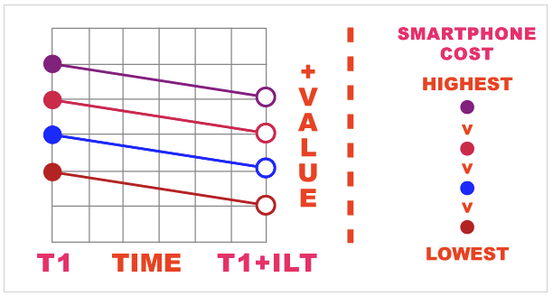 這就很好地說(shuō)明了“創(chuàng)新”經(jīng)濟(jì)體中的產(chǎn)品定價(jià)和定位。隨著時(shí)間的推移,借助于智能手機(jī)的“樂(lè)高積木”與混蛋化的摩爾定律調(diào)著情的價(jià)值(或者成本/計(jì)算能力)以分?jǐn)?shù)的形式在逐漸降低。到了那時(shí),蘋(píng)果公司繼續(xù)為市場(chǎng)帶來(lái)產(chǎn)品,但是一部手機(jī)的價(jià)值卻已經(jīng)被ILT的時(shí)間價(jià)值拖下了水。