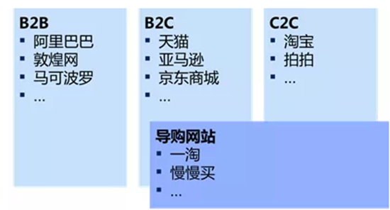 上圖的這些概念其實(shí)已經(jīng)被大部分人所熟知。我也不多廢話了。B端是企業(yè),C端是個人。在這里還是需要稍微花點(diǎn)筆墨解釋一下圖中的B2C——B2C在這里指的是非自有品牌B2C,主要有兩種:一個是平臺B2C(B2B2C),即可以讓商家進(jìn)駐、并向C端客戶出售產(chǎn)品的電商平臺,比如天貓、轉(zhuǎn)型后的京東商城等;另一個是非平臺的零售商B2C,從別人那邊進(jìn)貨然后向客戶銷售,自身不負(fù)責(zé)制造商品,比如轉(zhuǎn)型前的京東、一號店等。